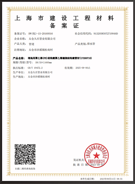太倉(cāng)久莊管業(yè)主導(dǎo)產(chǎn)品有高密度聚乙烯(HDPE)承插式雙壁纏繞管、纖維增強(qiáng)聚乙烯(FR-HDPE纏繞結(jié)構(gòu)壁管材、高密度聚乙烯(HDPE)成品檢查井、PE 給排水管、一次性注塑成型塑料檢查井及其配套產(chǎn)品等。產(chǎn)品廣泛應(yīng)用于市政工程、公共建筑、工業(yè)廠(chǎng)房等各個(gè)領(lǐng)域。與中建集團(tuán)、中鐵集團(tuán)、中交集團(tuán)、上海建工集團(tuán)、上海隧道股份等知名企業(yè)建立了良好的合作關(guān)系,銷(xiāo)售渠道通向全國(guó)各地。