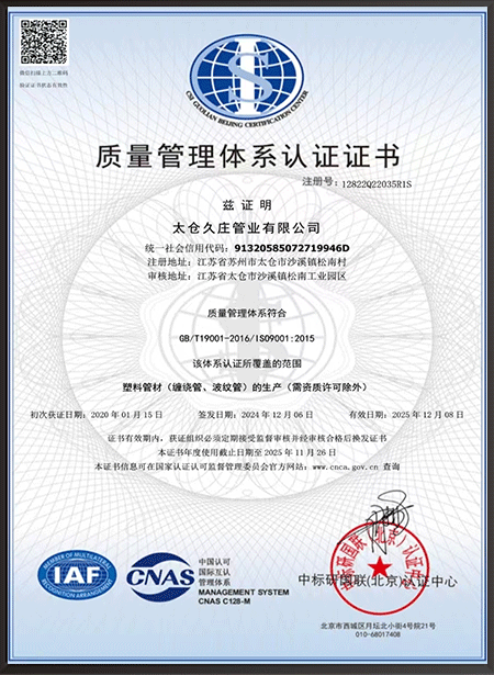 太倉(cāng)久莊管業(yè)有限公司一直堅(jiān)持“品質(zhì)改變世界,服務(wù)成就未來(lái)”的理念,用心做產(chǎn)品,真誠(chéng)做服務(wù),始終貫徹制造優(yōu)質(zhì)產(chǎn)品提供一流服務(wù)的宗旨。